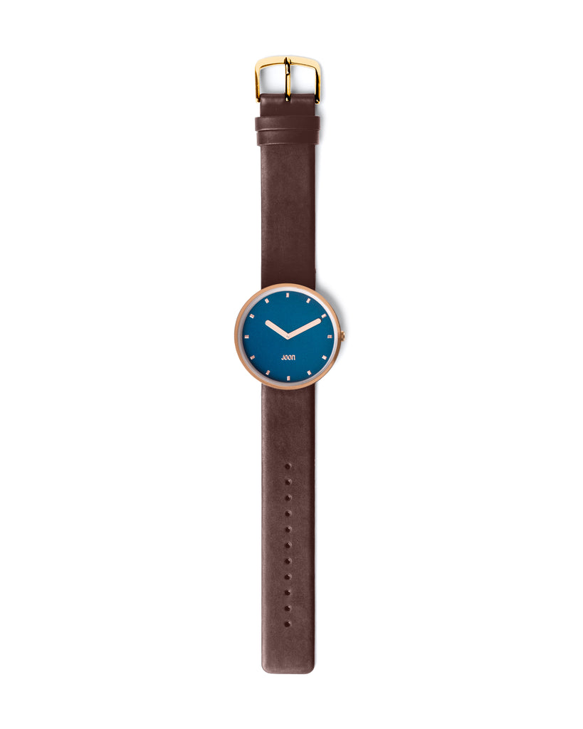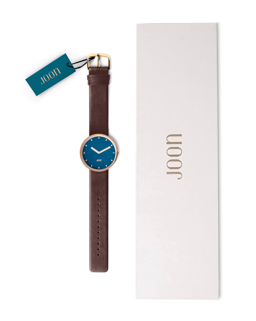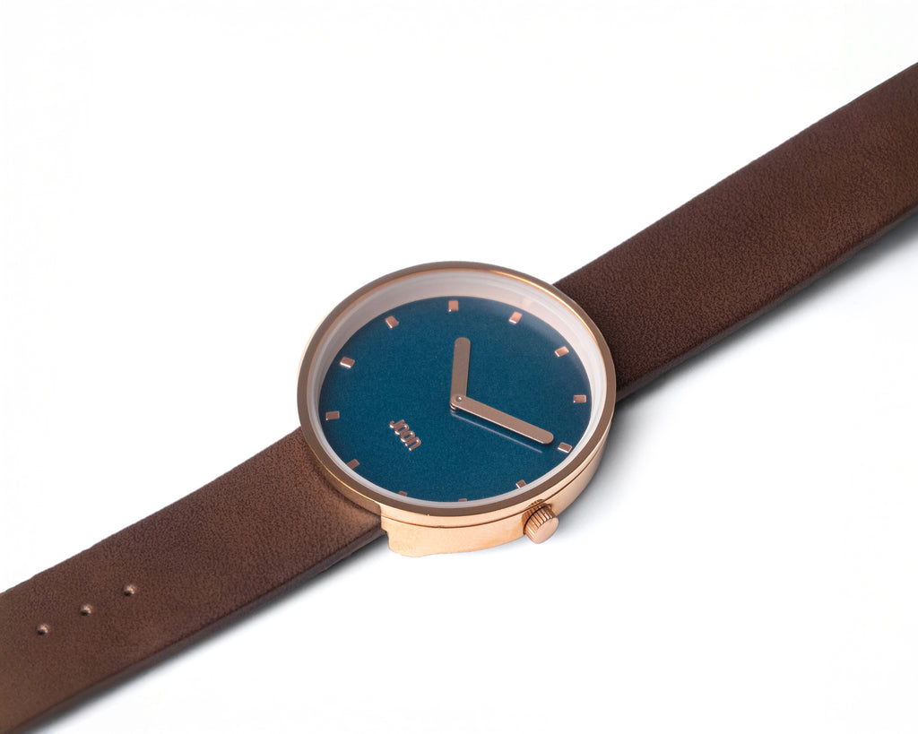 Introducing Socialite - a watch that celebrates the everyday heroes and the beauty in ordinary moments. With a teal blue dial that sparkles like the ocean and a rose gold case that shimmers like the sun, this timepiece is a testament to the beauty in simplicity. The brown straps wrap snugly around your wrist, like a warm embrace from your loved ones. Whether you're running errands, attending a family gathering or simply enjoying a cup of coffee at your favorite spot, the Socialite is the perfect companion that adds a touch of sophistication to your everyday life.