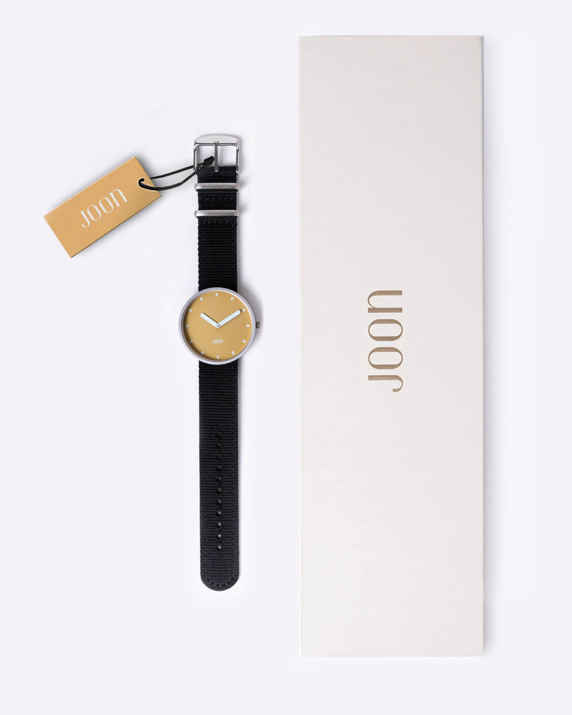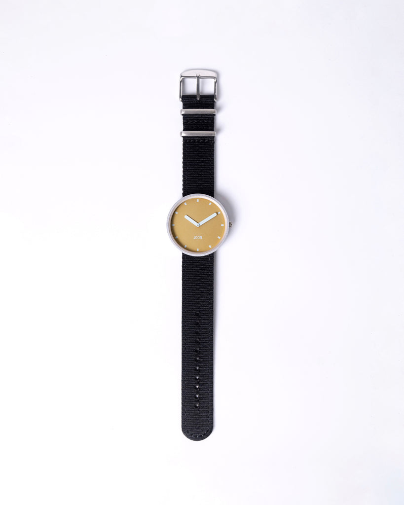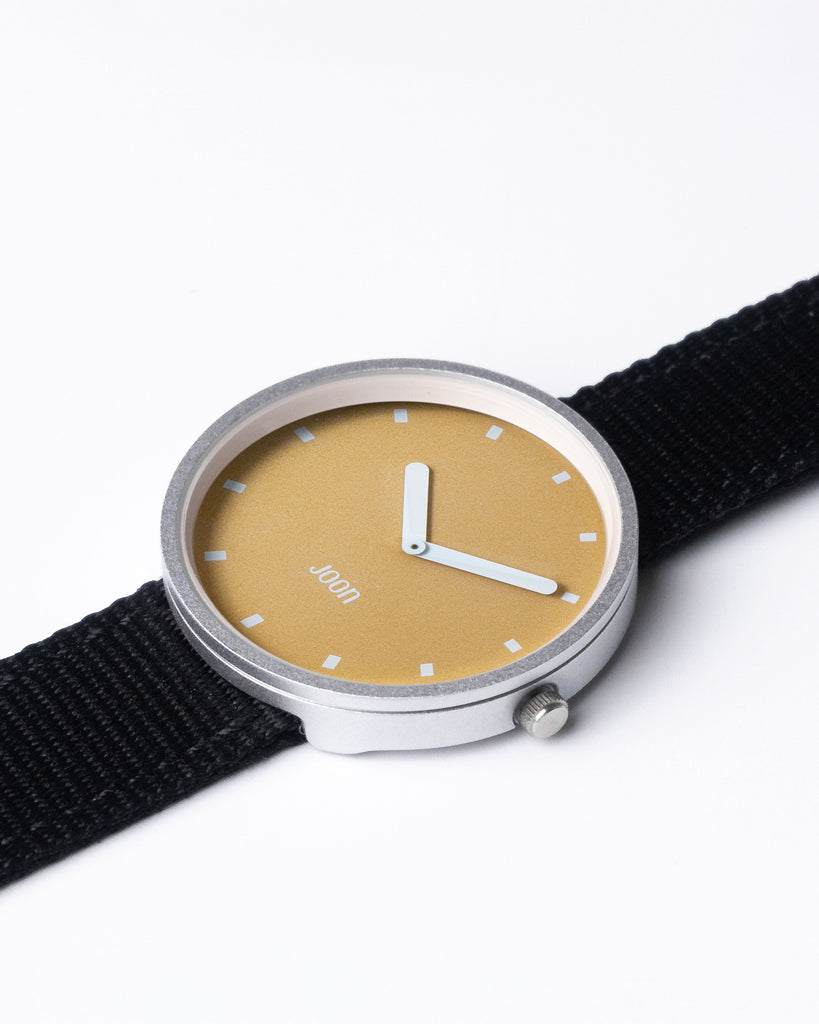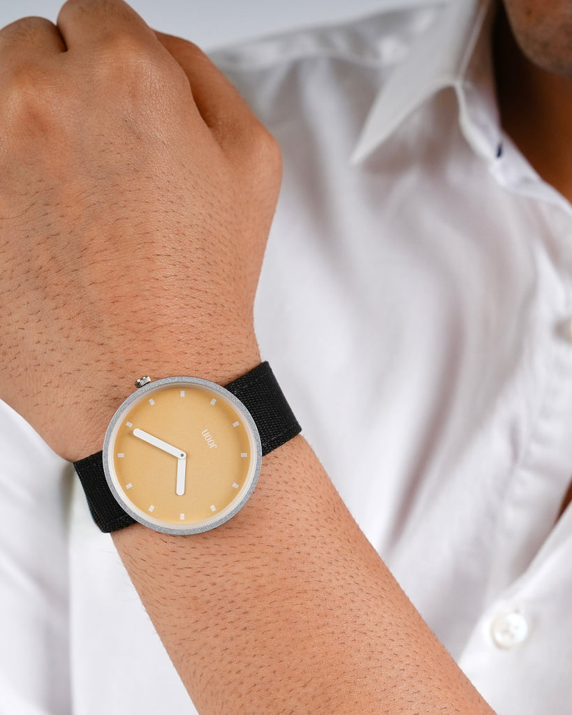 Introducing Sunny Side - the ultimate timepiece for a perfect summer day. With its mustard yellow dial, silver case, and thunder grey straps, this watch is the perfect embodiment of summer vibes. Whether you're soaking up the sun on a beach, dancing at a music festival, or just enjoying a day out with friends, Sunny Side is a perfect accessory to brighten up your day. So go ahead, embrace the good vibes and seize the day with this one!